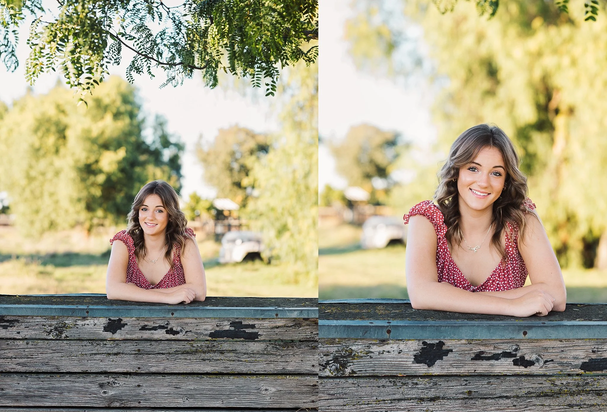 No West 12 Ranch session is complete without a little time spent with the horses who love to wonder over to anyone in the pasture. Kylee enjoyed the gentle connection standing next to one of the ranch horses. The light shone through as she stood by the fence, sunlight streaming through the trees behind her.